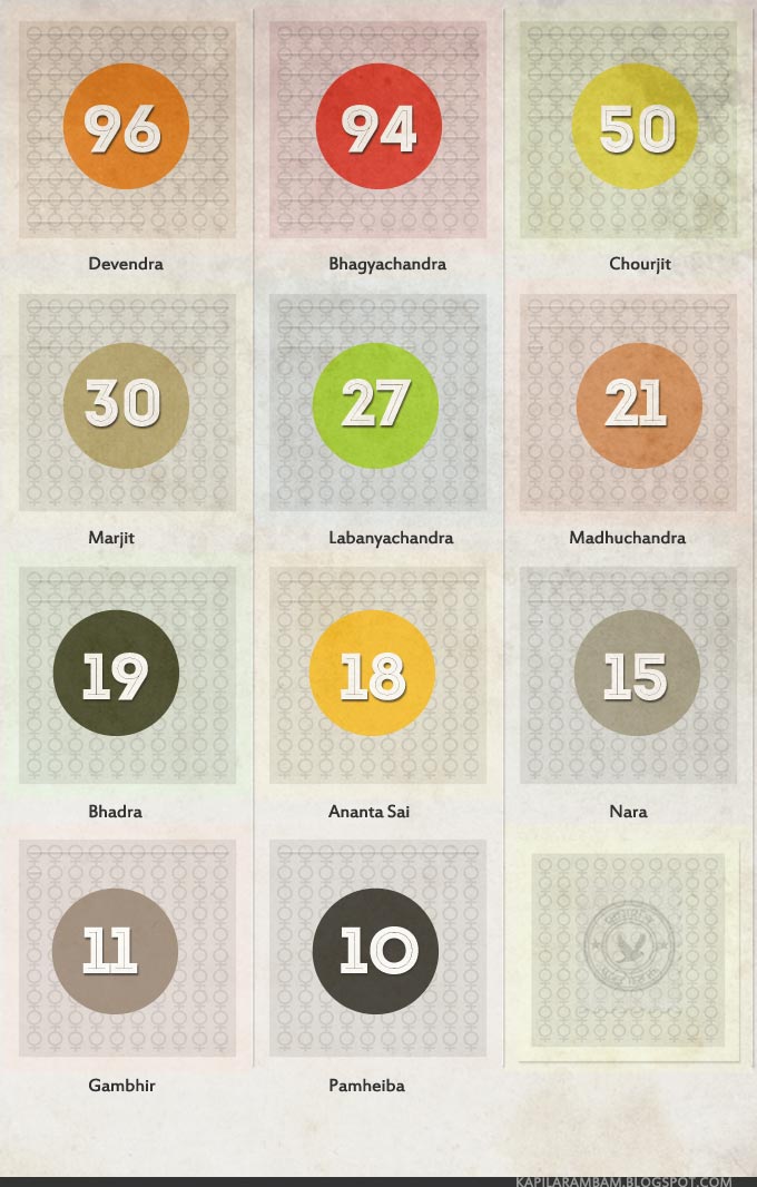 (And this one is a devotional song to Krishna. Apparently, the Manipuri kings were die-hard acolytes of this deity, who is famous for his divine womanising power. See below the kings and their number of wives and concubines counted together as wives. Do note that all of them were rulers during the second era of the history of Manipuri literature.)
